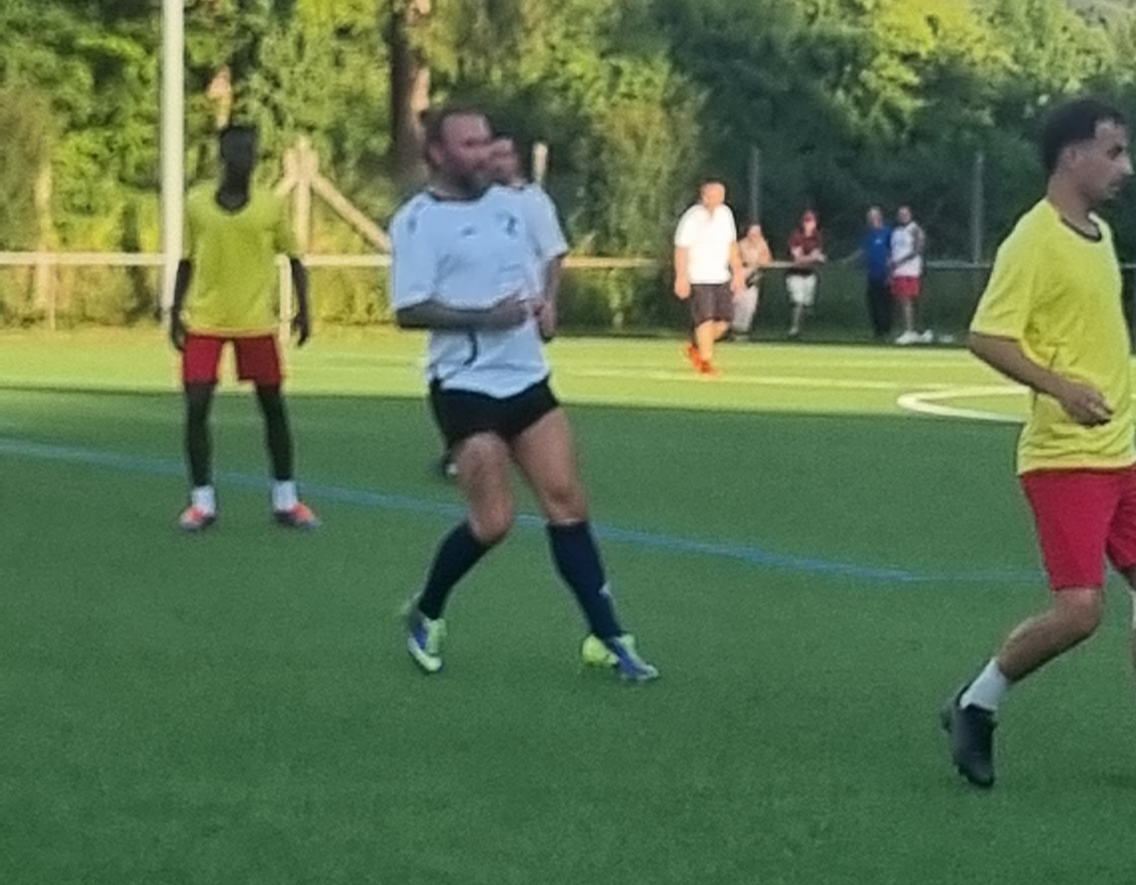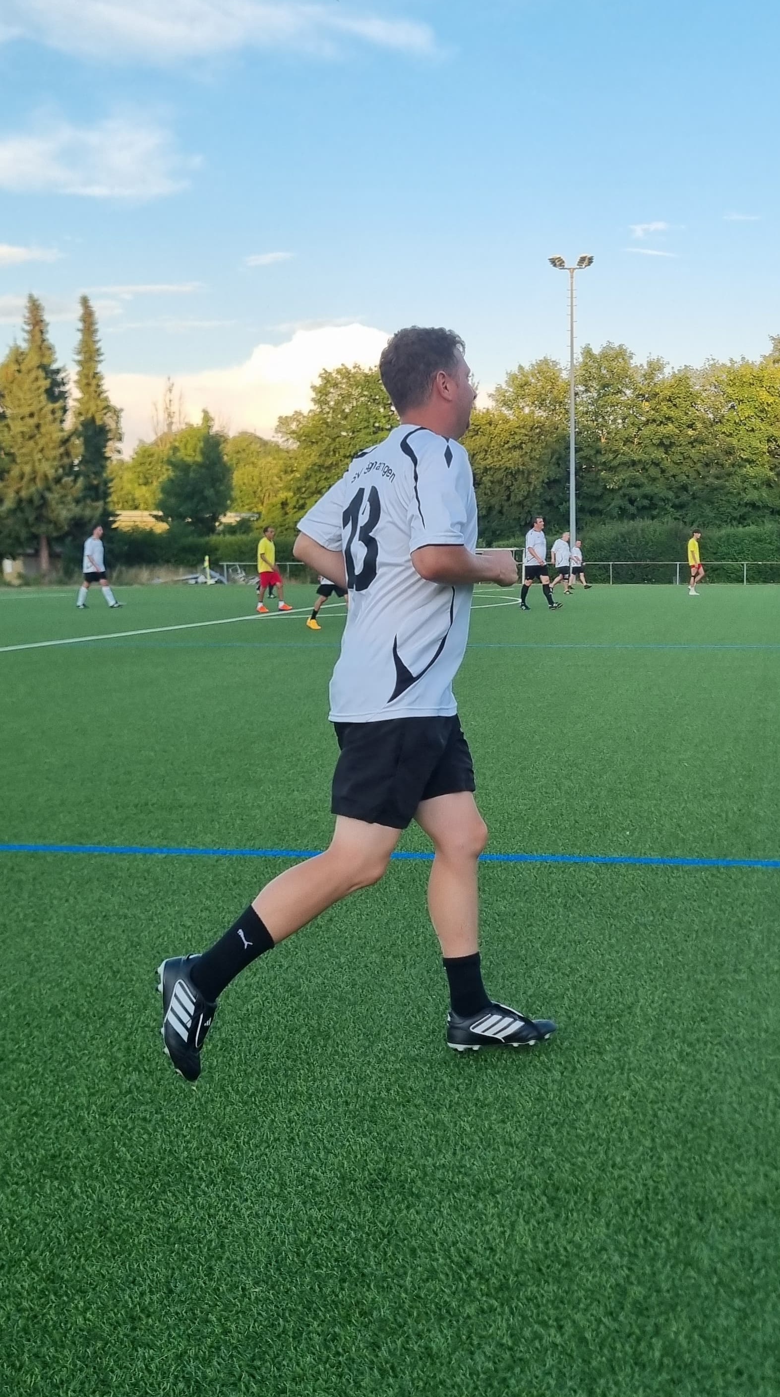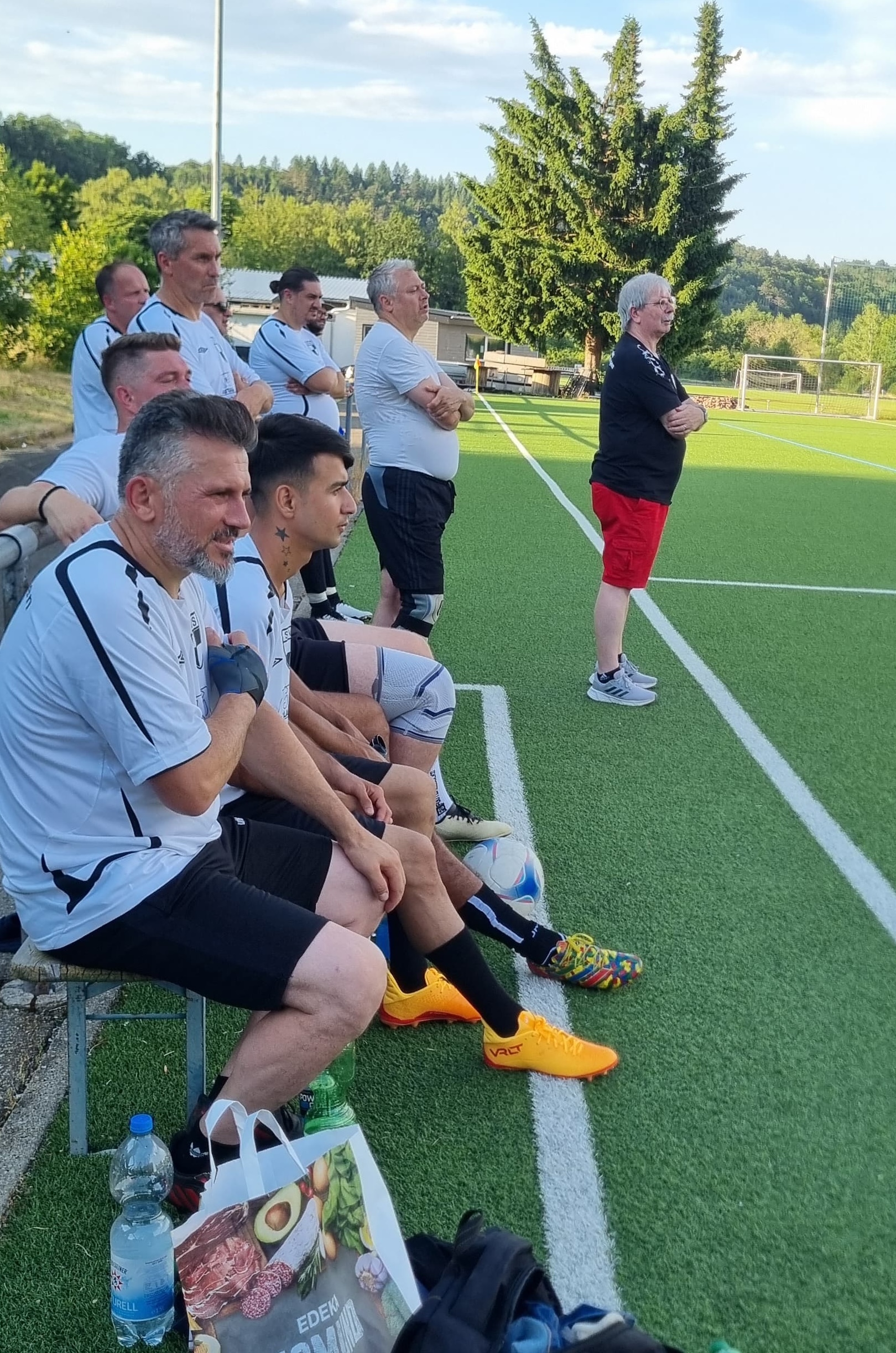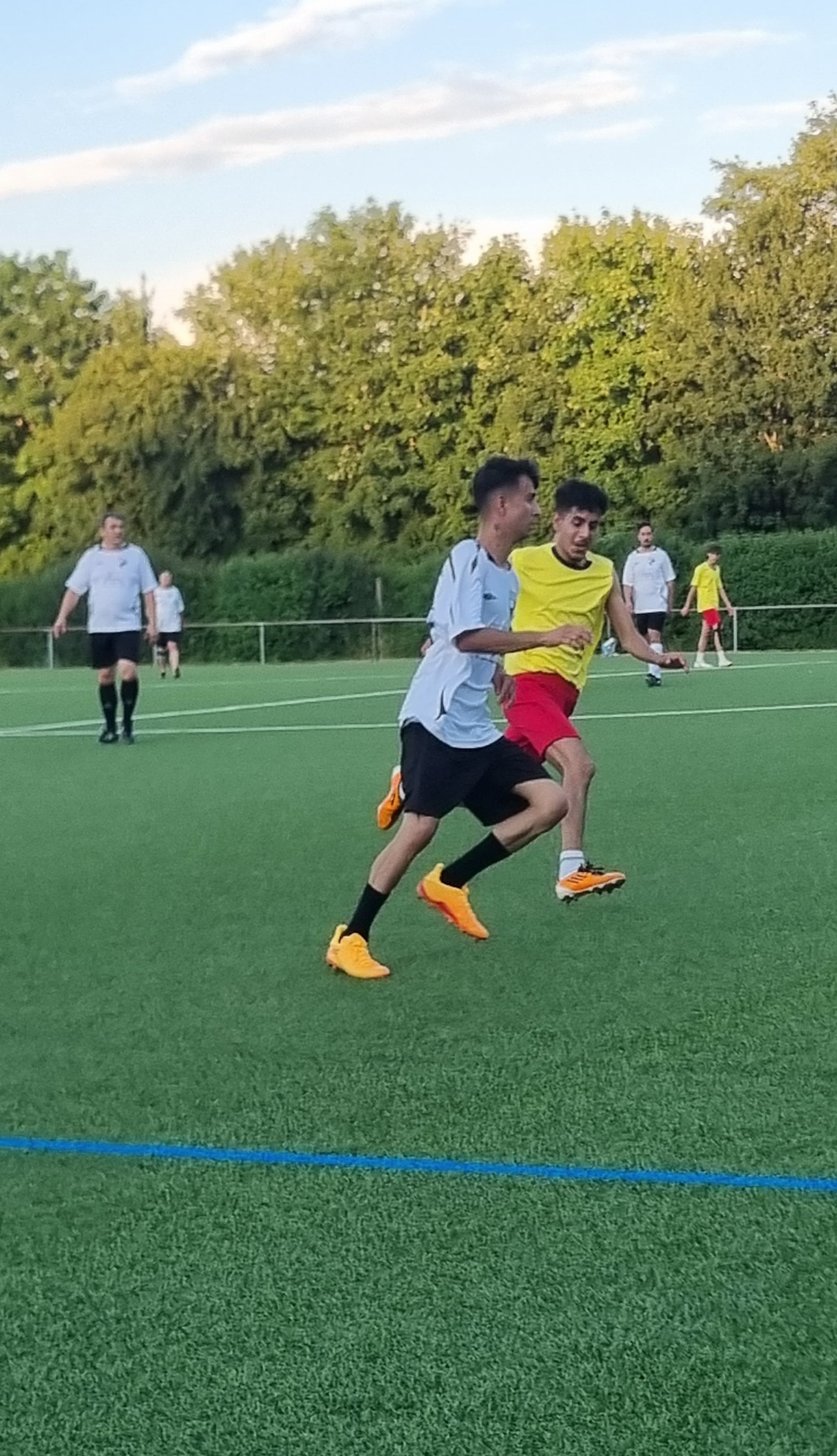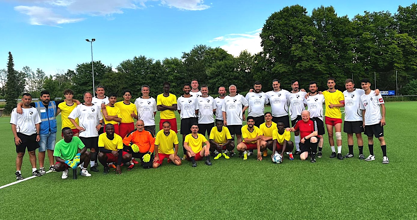 Am bisher heißesten Tag des Jahres hatten wir ein Freundschaftsspiel gegen eine Auswahl der LEA (Landeserstaufnahmeeinrichtung). Um 19 Uhr begann das Spiel. Valle übernahm den Part des Schiedsrichters.